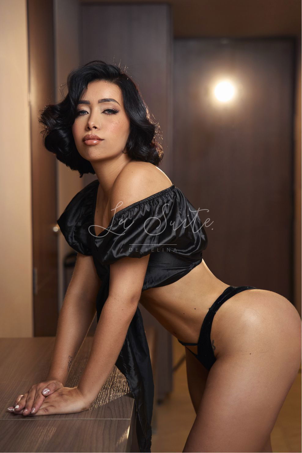 Coquettish and very feminine, I like to wear sexy clothes, short skirts, high heels and naughty underwear to reveal my natural curves. Despite my young age, I am a true professional, who knows how to create an atmosphere conducive to this type of experience.